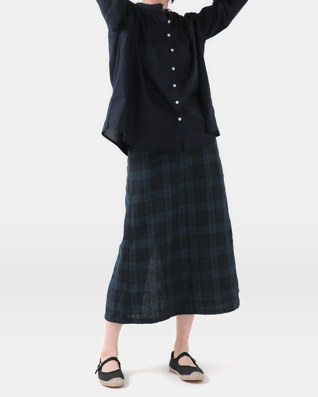 차분한 컬러 배색과 클래식한 체크 패턴이 어우러진 이 스커트는, 시간이 흘러도 쉽게 질리지 않는 빈티지 감성의 아이템이에요. 허리 뒷밴딩 디테일과 탄탄한 면 소재 덕분에 편안한 착용감은 물론, 자연스러운 A라인 실루엣으로 체형 보완까지 도와줍니다. 티셔츠부터 셔츠, 니트까지 다양한 아이템과 매치해보세요. 포멀하게도, 캐주얼하게도 활용 가능한 계절을 타지 않는 데일리 아이템입니다.