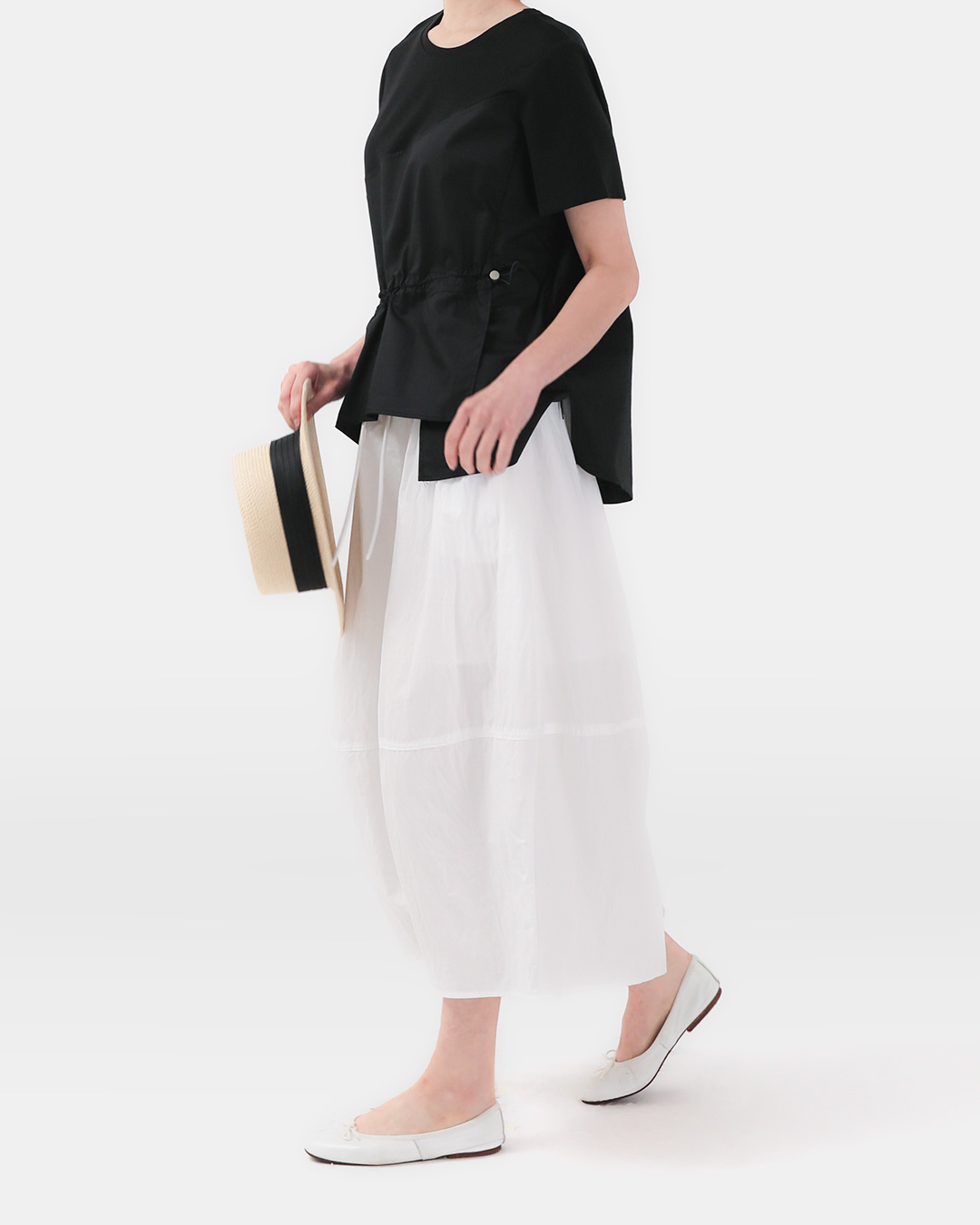 얇고 시원한 여름 소재로 완성된 이 스커트는 허리 아래로 자연스럽게 퍼지는 볼륨 실루엣이 체형 커버에 탁월하면서도 경쾌한 인상을 줍니다. 복부는 안정적으로 감싸주고, 밑단은 가볍고 유연하게 흘러서 걸을 때마다 리듬감 있는 실루엣을 연출해주죠. 무더운 날에도 스타일은 포기할 수 없는 분들을 위한, 실용성과 우아함의 균형을 갖춘 여름용 스커트입니다. 화이트와 블랙, 두 가지 컬러로 준비했어요. M(55-66), L(66-77) 사이즈로 만나보세요 😊