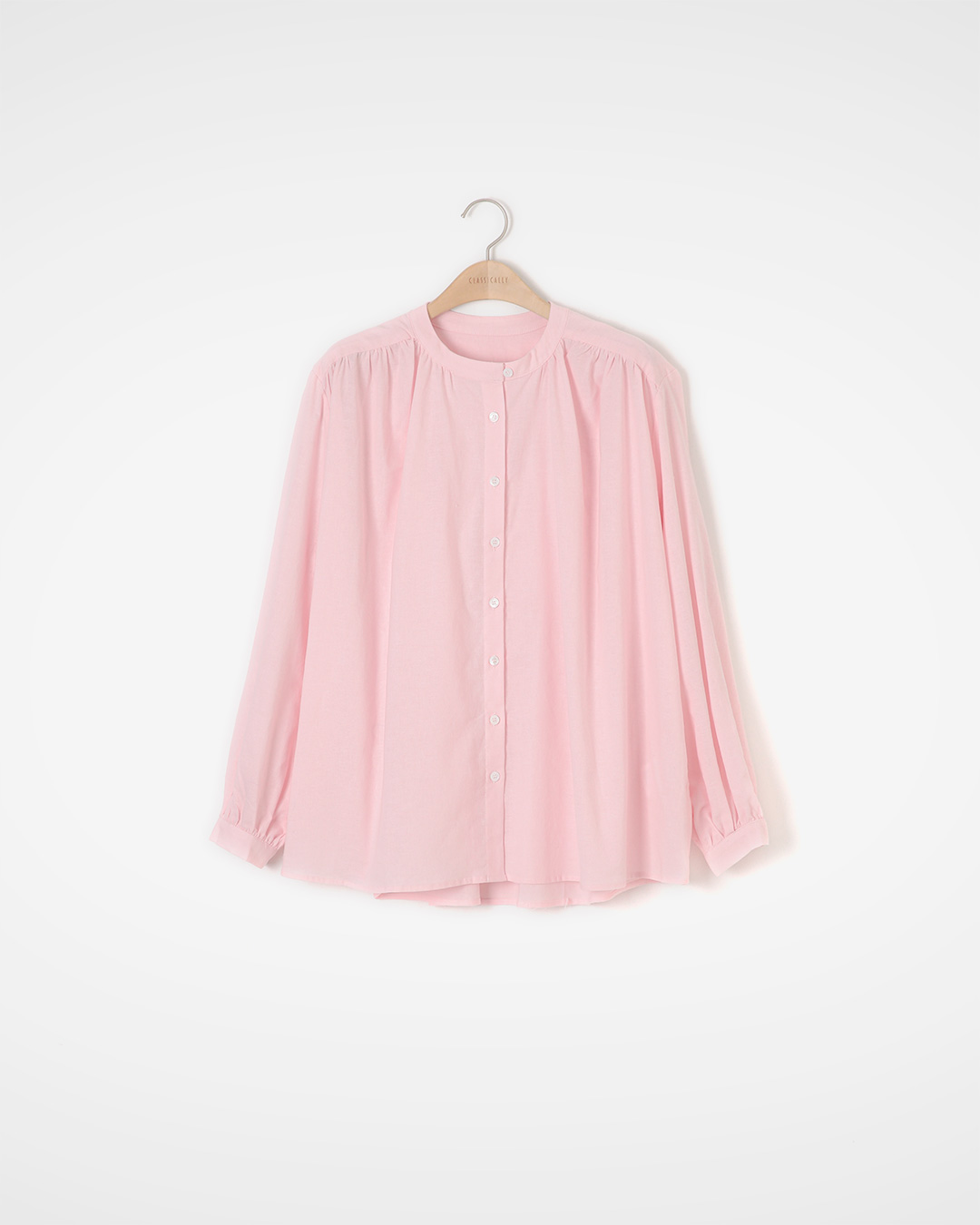 단정한 라인에 은근한 디테일을 더해 매일의 셔츠룩에 감각적인 변주를 준 블라우스입니다. 라운드 밴드카라와 은은한 셔링, 그리고 흐르는 핏이 입는 순간 편안함과 세련됨을 동시에 안겨줘요.