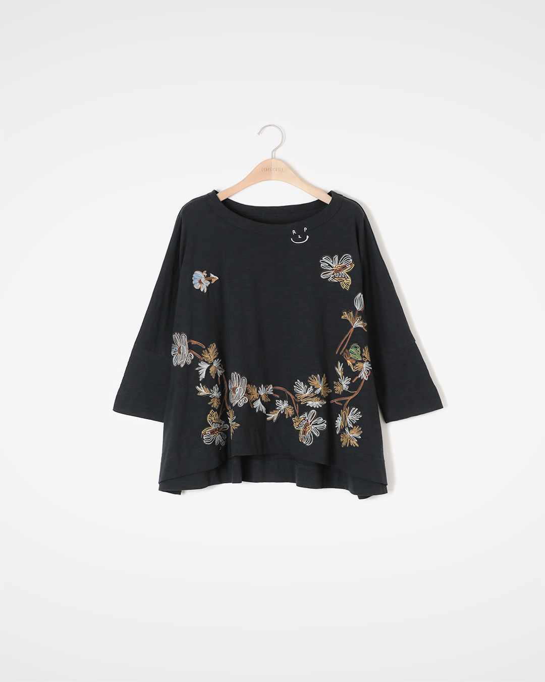일본산 프리미엄 워싱 코튼과 섬세한 자수 꽃들이 은은하게 존재감을 더하는 티셔츠입니다. A라인으로 여유롭게 퍼지는 실루엣 덕분에 체형 고민 없이 편안하게 입기 좋아요. 7부 소매 끝을 두 겹 스티치로 잡아 주어서 롤업 없이도 자연스러운 볼륨이 완성됩니다. 티셔츠 하나로 편안함·감성·체형 커버를 모두 챙기고 싶을 때, 가장 먼저 손이 가게 될 데일리 탑입니다.
