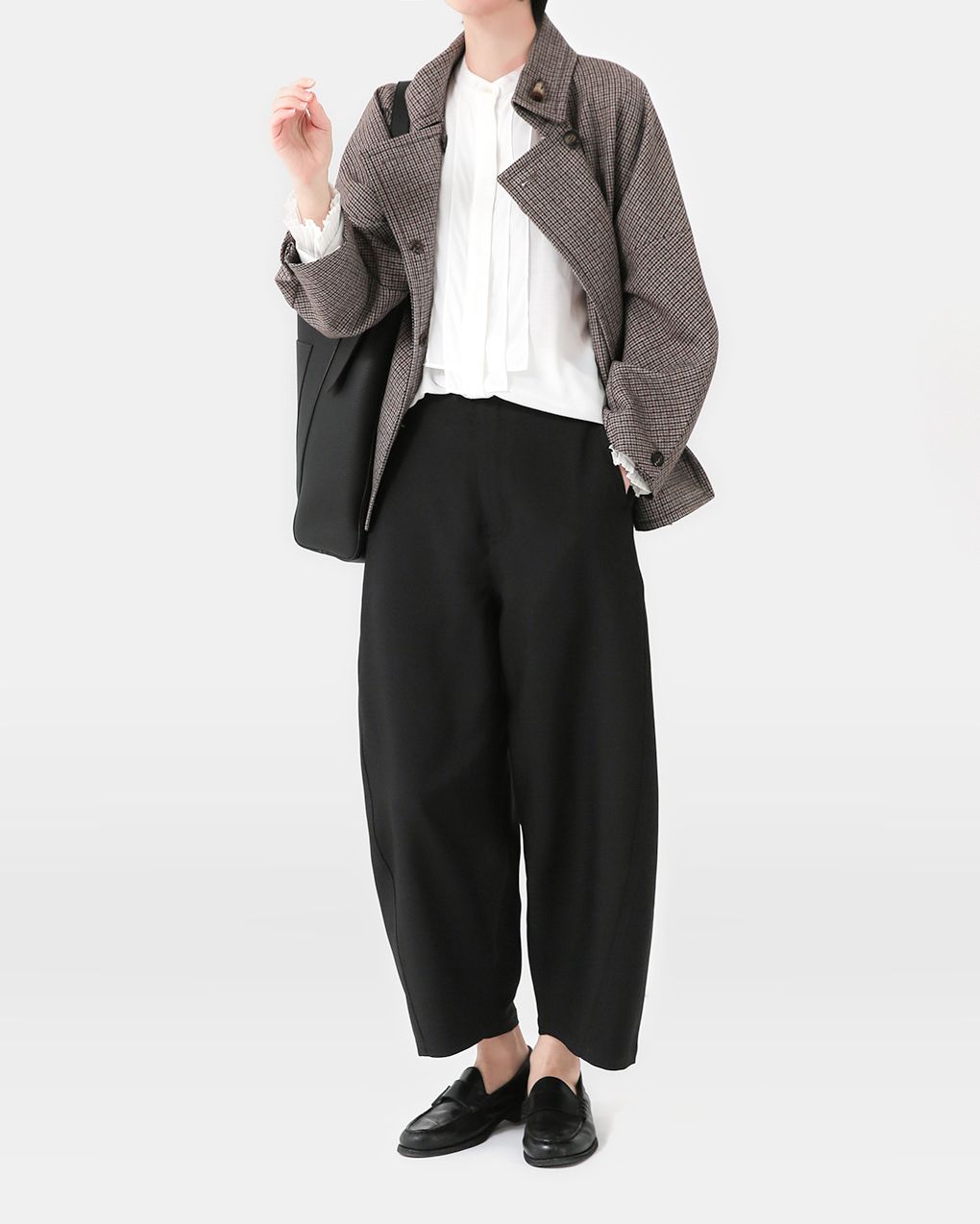 얇고 하늘하늘한 이탈리아산 원단으로 완성된 크롭 테이퍼드 팬츠입니다. 입체적인 실루엣이 돋보이는 여유로운 핏에, 군더더기 없는 마감으로 세련된 분위기를 자아내죠. 블랙 컬러라 베이식 아이템처럼 보이지만, 걸을 때마다 드레시한 무드가 은은하게 드러나는 묘한 매력이 있습니다. S, M, L 세 가지 사이즈로 준비되어 있으니 체형에 맞춰 선택해보세요. 매일 손이 가는 에센셜 아이템이면서도, 한 끗 다른 감각을 원하는 분께 자신 있게 추천드립니다.😊