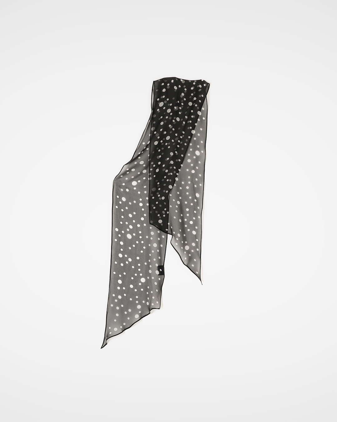 • 클래식 & 모던, 투톤 도트 패턴 블랙과 그레이 톤에 흩뿌려진 크고 작은 도트들이 경쾌하면서도 결코 가벼워 보이지 않는 우아함을 연출합니다. 피부 톤이나 옷차림에 크게 구애받지 않아 ‘어떤 룩과도 잘 어울릴까?’ 하는 고민을 덜어주어요.