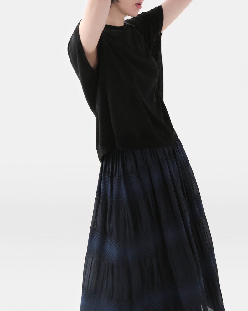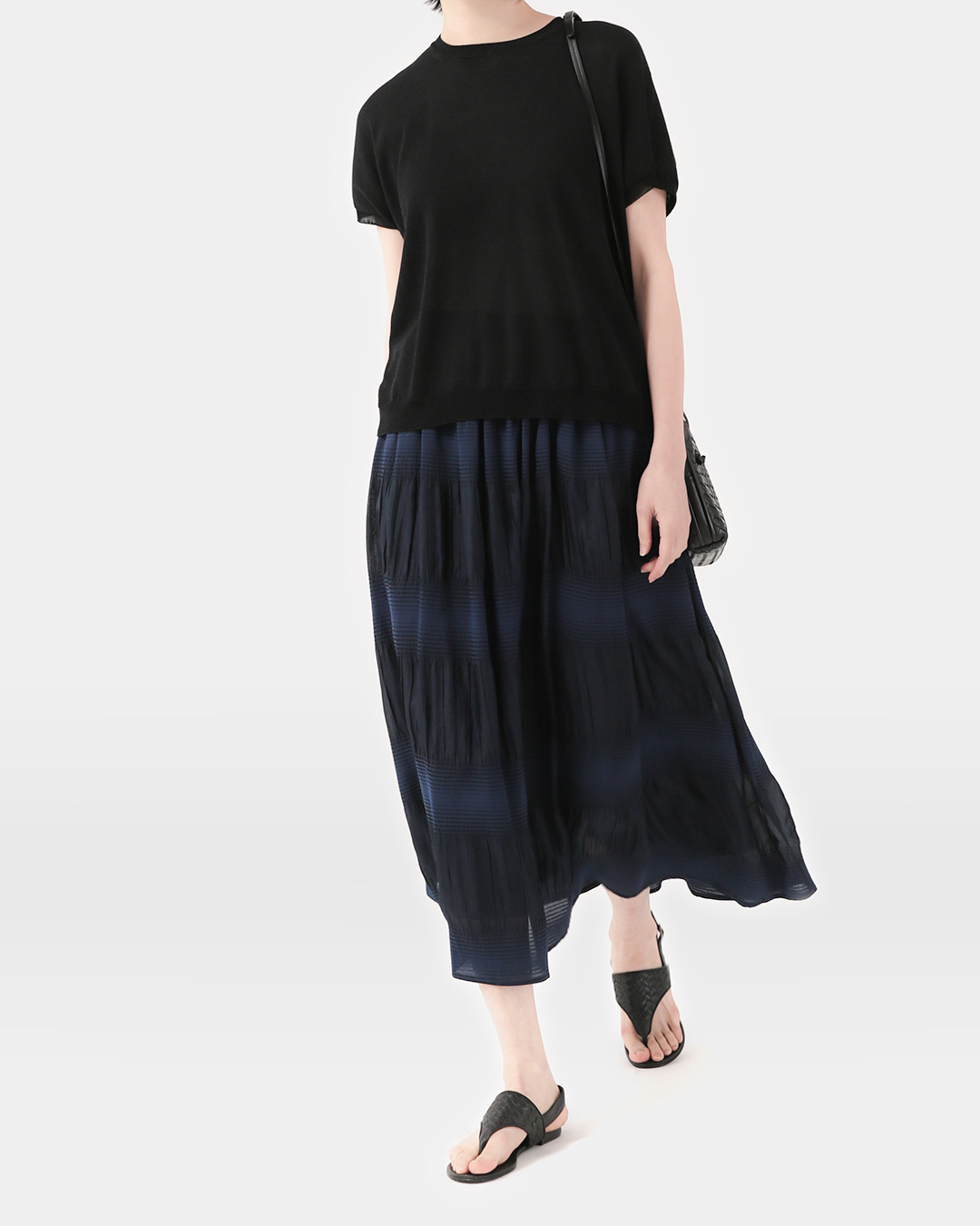 한 벌로 룩의 공기를 바꾸는 실크 블렌드 티어드 스커트. 부드러운 광택과 가벼운 흩날림으로, 일상부터 여행까지 우아한 움직임을 더해 주세요.