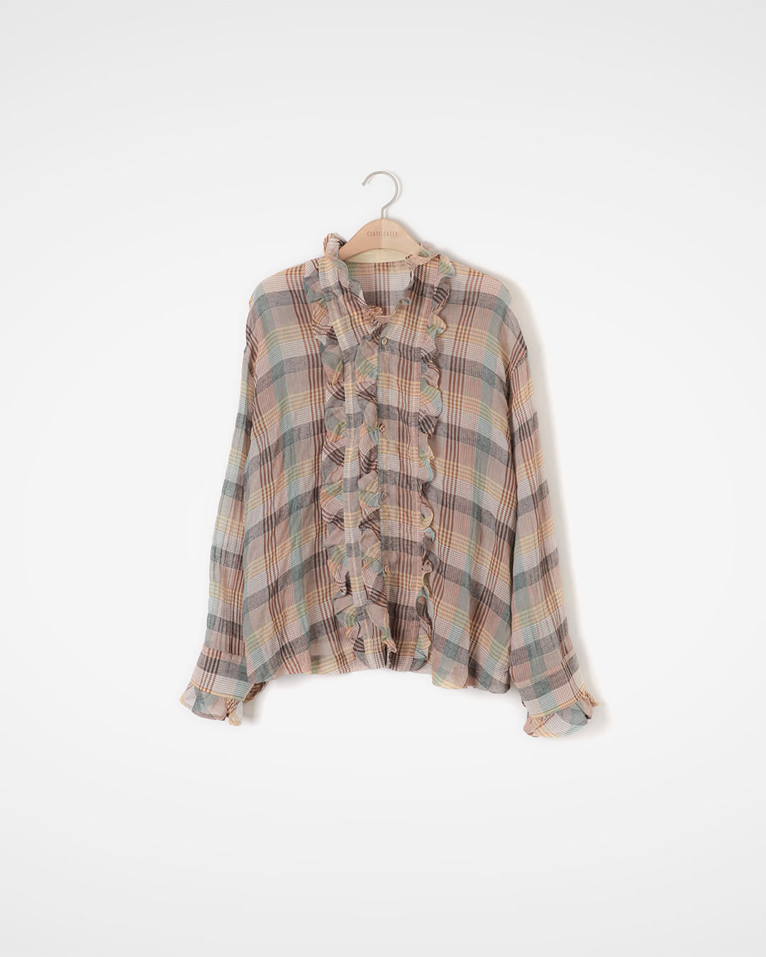 단정한 셔츠도 좋지만, 살짝의 러플과 부드러운 컬러가 곁들여진 블라우스 하나면 기분까지 밝아지는 법. 가벼운 코튼 보일이 몸을 툭 감싸며, 얼굴빛을 화사하게 살려주는 파스텔 체크—데님 위에, 린넨 팬츠 위에 가볍게 매치해도 ‘오늘은 조금 특별한 하루’가 시작됩니다 😊