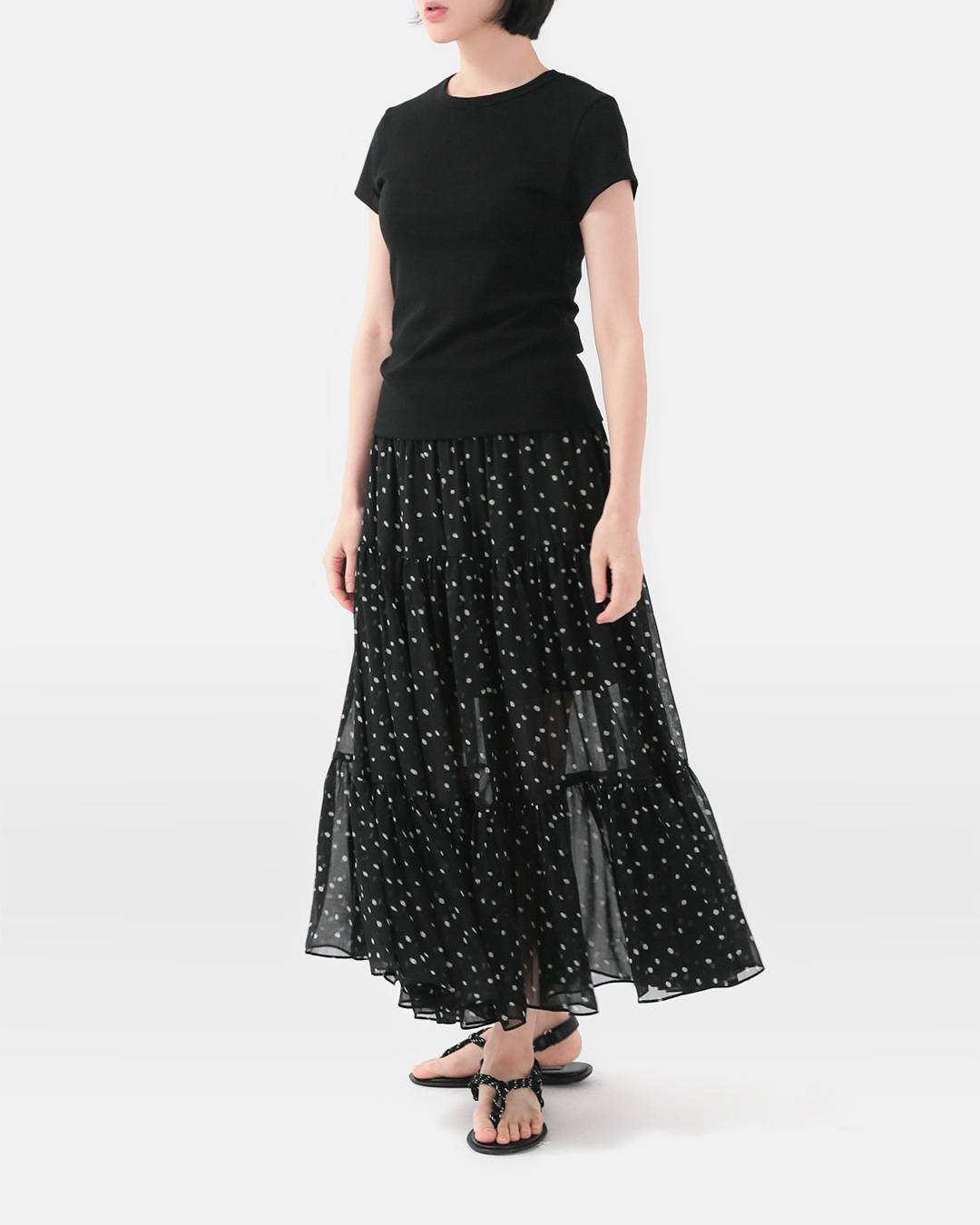 * 밑단으로 갈수록 풍성해지는 티어드 절개가 움직일 때마다 우아한 실루엣 연출