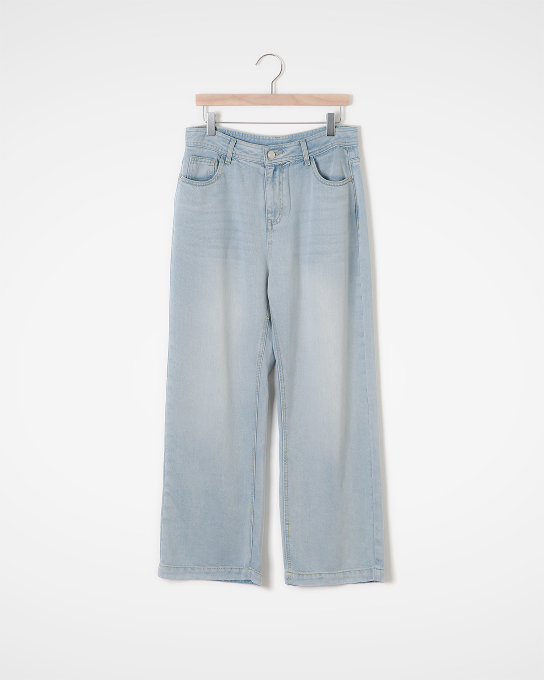 땀과 열기에 예민한 계절에도 입고 싶은 데님, 부드러운 라이트 워싱과 얇은 두께로 시원하게 입기 좋은 제품이예요. 은은한 페이드가 들어간 라이트 워시 컬러가 경쾌한 여름 무드를 완성하며 하이웨이스트와 여유로운 일자 핏이 다리를 길고 곧게 연출해줘요. 힙 포켓 위치를 살짝 위로 올려 시각적 리프팅 효과까지 신경썼어요. 발목에 닿는 세미 크롭 기장으로 샌들, 플랫, 스니커즈 모두 손쉽게 코디하기 좋아요. 모던한 실루엣 덕분에 셔츠를 넣어 출근길에, 린넨 탱크톱과 함께 주말 브런치에! 바쁜 일정 사이에서도 한결같이 편안하고 우아한 하루를 만들어 줍니다 😊