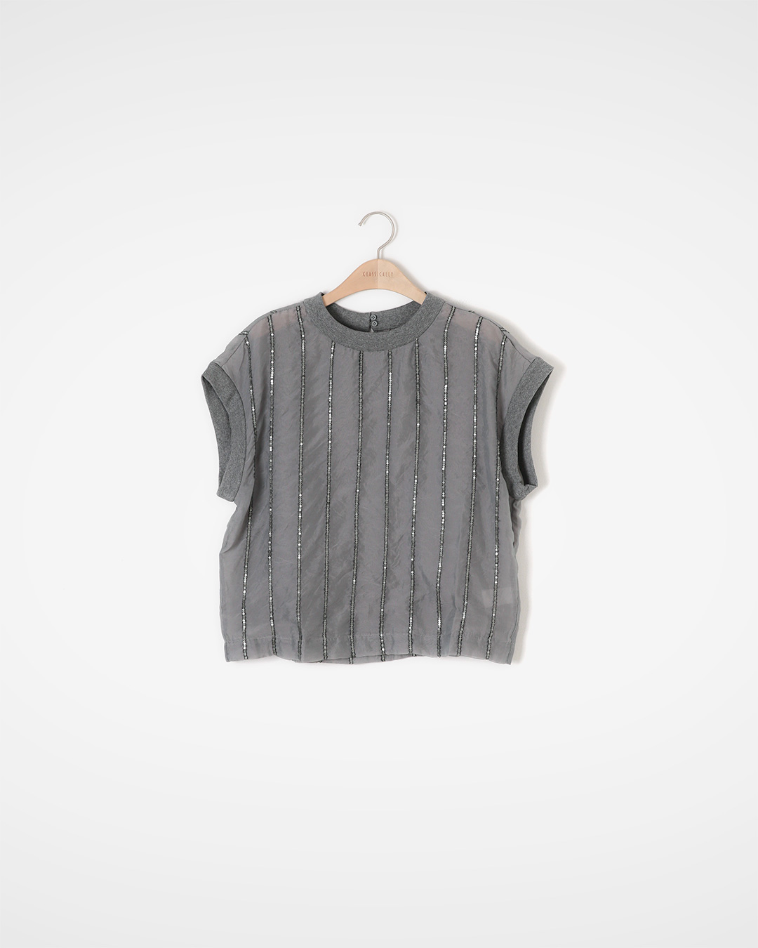 눈부신 햇살에도, 저녁 조명에도 가녀린 반짝임이 살포시 살아나는 탑이에요. 가벼운 니트 밴딩과 시퀸 스트라이프가 어우러져 데님 위에 툭, 슬랙스와도 손쉽게 드레스업이 완성됩니다. 한여름엔 와이드 팬츠나 쇼츠와 경쾌하게, 간절기엔 가디건이나 재킷 속에 은은한 포인트로— 반짝임 한 끗으로 일상의 감도를 높여줄 아이템입니다 😊