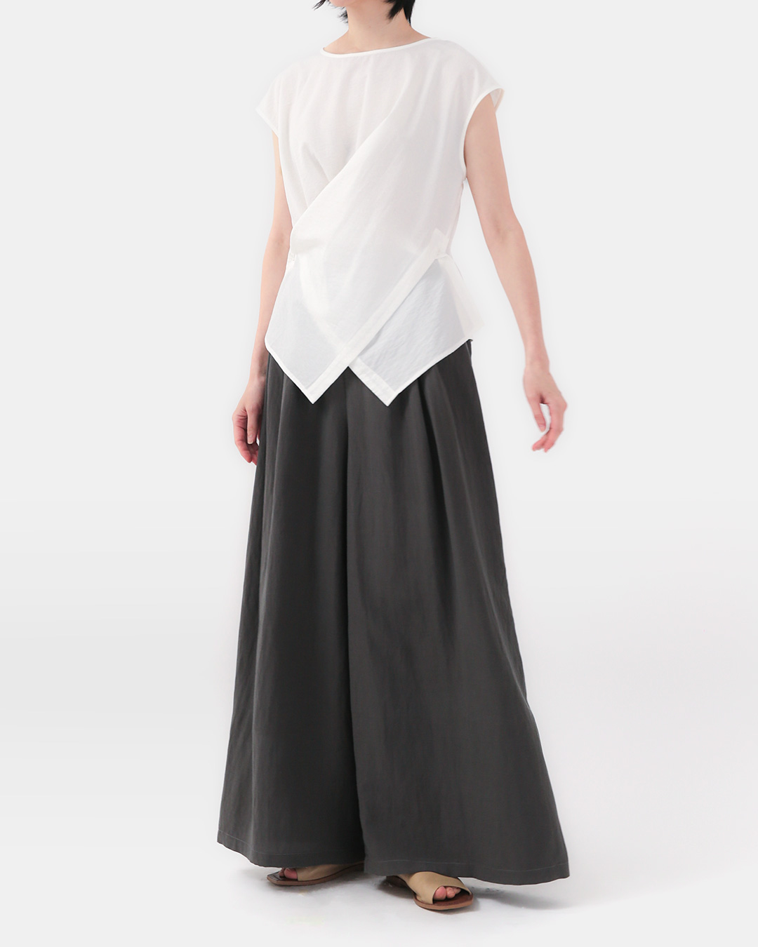 무심한 듯 시크한 실루엣, 입는 순간 시선을 사로잡는 입체적 드레이프. 한 끗 다른 여름 스타일을 찾는 분께 추천드리는 블라우스입니다. 비스코스 혼방 특유의 드라이한 촉감과 찰랑이는 흐름이 더해져, 차려입은 듯 자연스럽고 우아한 분위기를 연출해 줍니다. 팬츠 위에 툭, 혹은 스커트와 함께 포멀하게도 연출해 보세요 😊