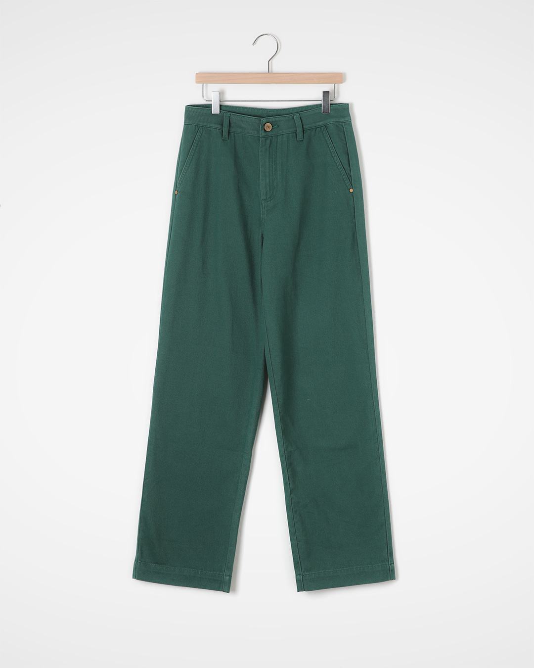 그린을 애정하는 분들이라면 결코 지나칠 수 없는 맑으면서도 무게감 있게 잡아주는 너무 예쁜 그린 컬러입니다.적당한 통의 스트레이트 핏인데요 힙 선이 예뻐서 뒤태도 잘나오고 다리도 길어 보여요. 명품 브랜드에서 사용하는 코튼100% 소재라고 하는데 원단 참 좋습니다. 사이즈는 44부터 77까지 정사이즈 추천드려요 😊