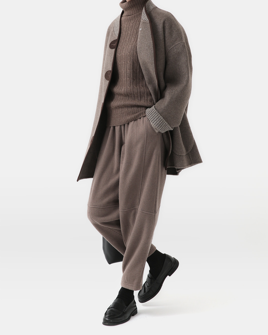소프트한 감촉의 편안한 울 텐셀 소재로 기모 안감을 더해 포근함을 높였어요. 힙과 허벅지는 낙낙하면서 크롭 기장감으로 좁게 떨어지는 배기 핏이예요. 원단 텍스처와 허리 전체 밴드 조합으로 마력 같은 편안함이 있는 제품입니다. 세미 캐주얼, 세미 포멀한 느낌으로 어디든 부담 없이 입기 좋아요. 편안함을 사랑하는 분들께 자신있게 추천드립니다. M(55) L(66) XL(77) 사이즈로 만나보세요 😊